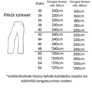 -Tuotekuvista löydät menekin kankaaseen erilaisille leveyksille ja jokaiselle kaavan koolle ja mallille.
