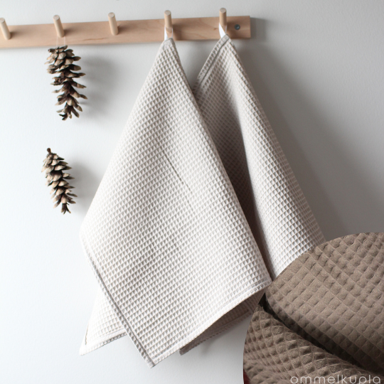 Vohvelikangas kannattaa pestä vasta ompelun jälkeen, sillä pinnan tekstuuri muuttuu pesussa pehmoisemmaksi ja ryppyisemmäksi.