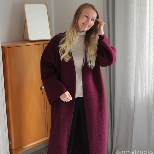 Noelle pitää sinut lämpimänä ja trendikkäänä. Ompele Noelle -kankaasta takki välikauteen tai leutoon talveen, sopii erityisesti pitkiin takkeihin. Voit jättää reunat huolittelematta sillä tämän villakankaan reunat eivat purkaannu. Voit valita ompelukaavaksi väljän takin tai tyköistuvan mallin ulkoiluun.