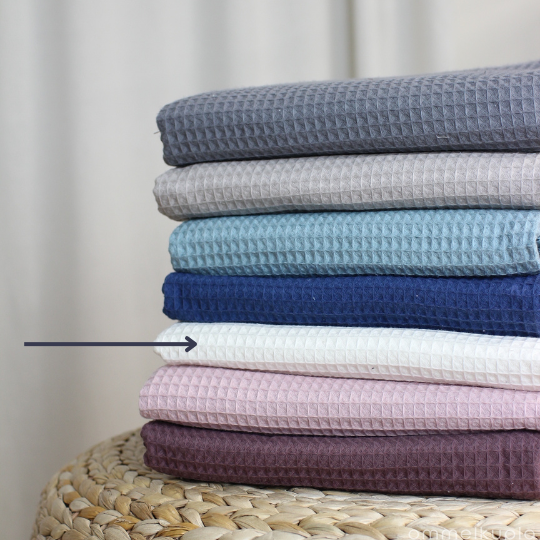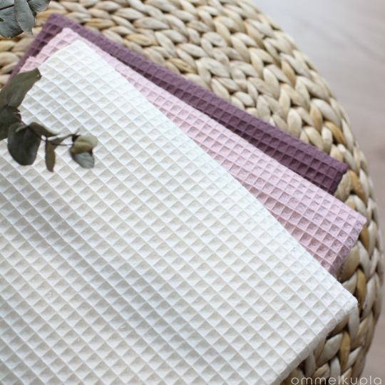 Vohvelikangas kannattaa pestä vasta ompelun jälkeen, sillä pinnan tekstuuri muuttuu pesussa pehmoisemmaksi ja ryppyisemmäksi.