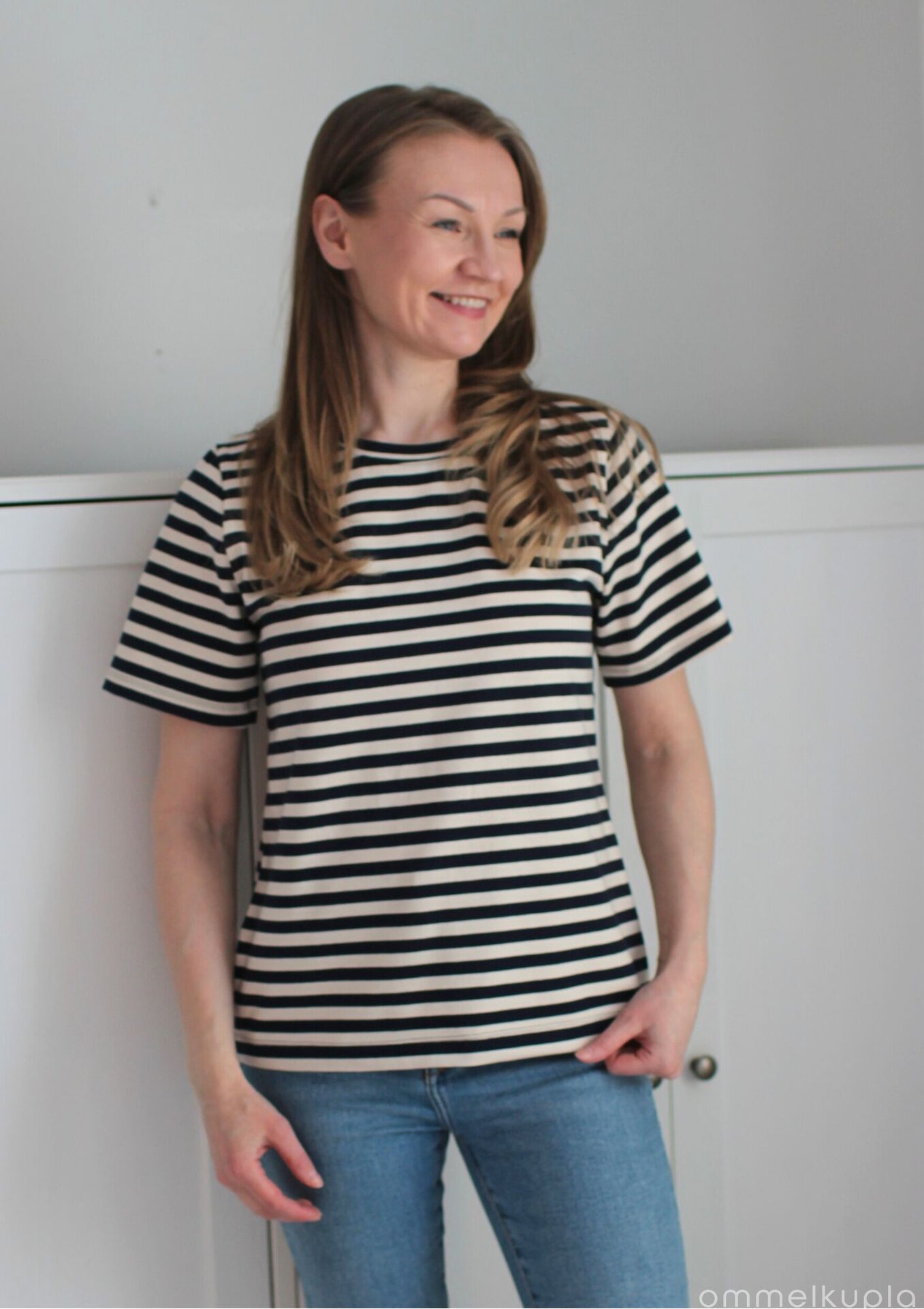 Trikoo kannattaa aina esipestä ennen ompelua. Jos aiot laittaa valmiin vaatteen myös kuivausrumpuun, vaikka sitä ei suositella, niin laita myös kuivausrumpuun ennen ompelua. Näin saat kankaan kutistettua juuri niin paljon, kuin se kutistuu valmiina vaatteena.