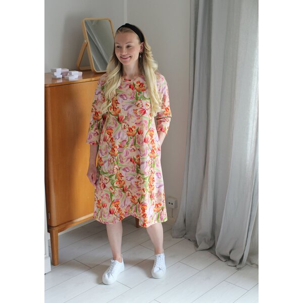 Kankaan kuosi eli kuviointi on suunniteltu Suomessa Ommelkuplalle ja samaa kangasta et siis löydäkään muualta! Se on painettu sertifioidulle kankaalle Euroopassa. Sertifikaatit takaavat tuotteen turvallisuuden ja myös sen, että tuotanto on eettistä. Voit siis huoletta ommella ja käyttää vaatetta, olemme huolehtineet edellämainituista puolestasi!