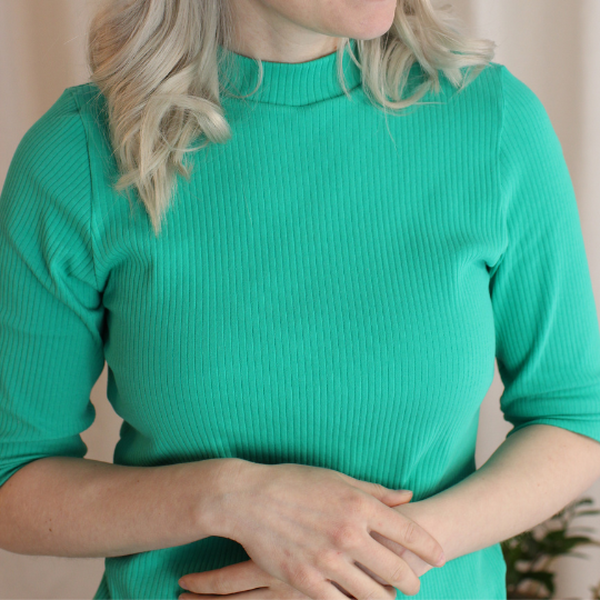 Voit huolitella paidan kauluksen/pääntien tällä samalla ribbitrikoolla.