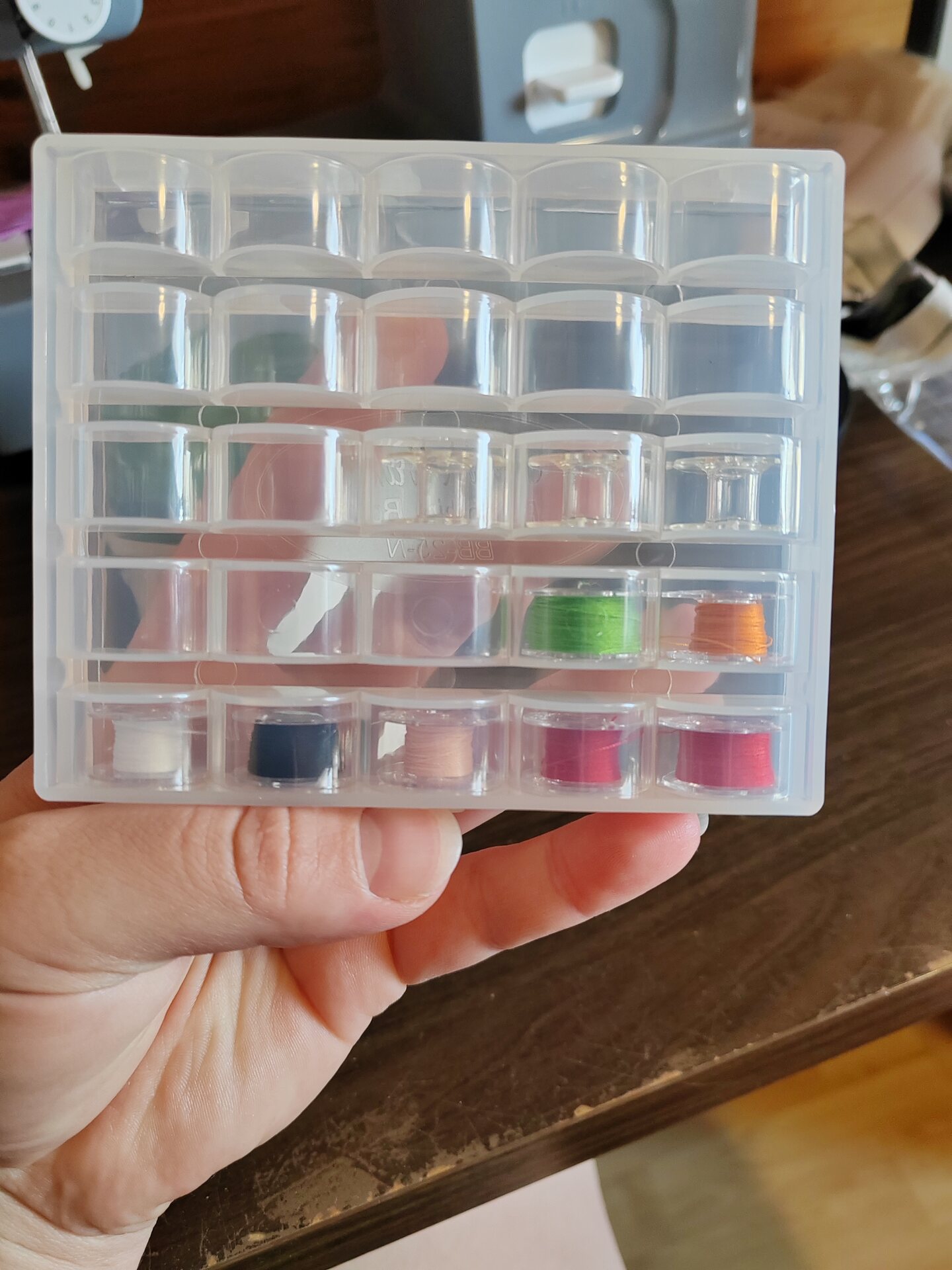 Kun puolaat ja säilytät puolat rasiassa, niin langat pysyvät järjestyksessä sotkeutumattomina ja löydät tarvitsemasi langan värin helposti.