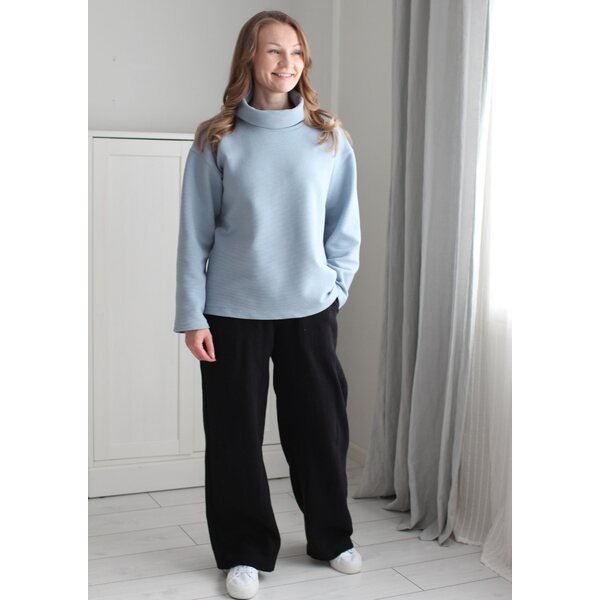 Pehmeä ja notkea ottoman -neulos on täydellinen valinta siisteihin arkivaatteisiin kuin soffalla löhöilyynkin. Se sopii hyvin huppareihin sekä väljiin paitoihin ja siksi onkin niin monipuolinen. Ottoman ei juurikaan jousta, joten rennot ompelukaavan toimivat parhaiten. Vahvuudeltaan ottoman on kuin perus joustocollege, mutta ei niin joustava. Kankaassa on elävyyttä tuova vaakaraidoitus, joka on saatu aikaan neulontatekniikalla. Jos haluat siis jotain muuta kuin peruscollaria, niin valitse silloin tämä ihanuus  ja kaavaksi jokin väljä paita.