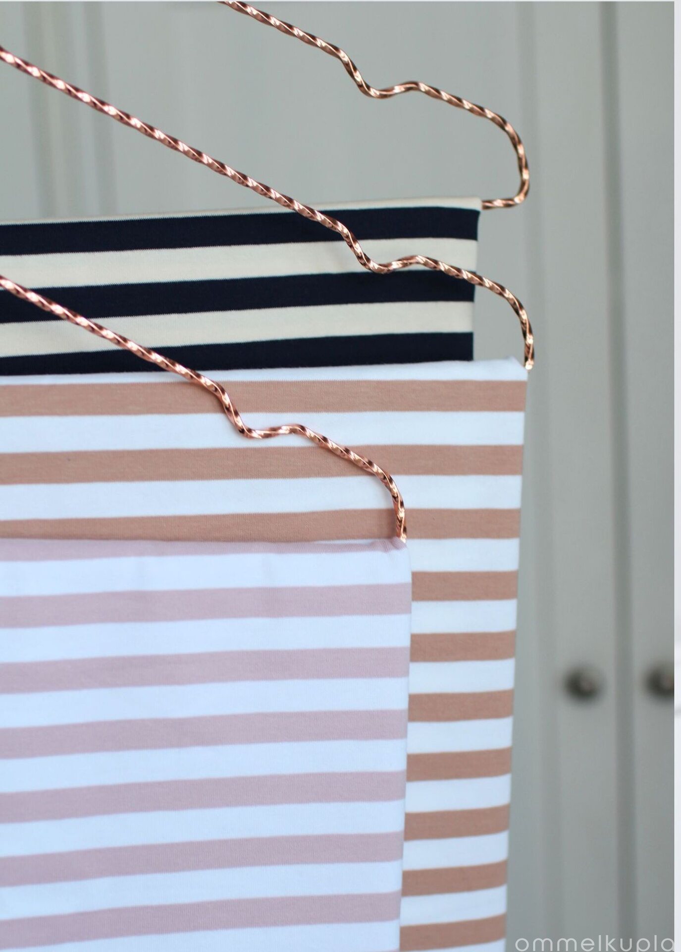 Trikoo kannattaa aina esipestä ennen ompelua. Jos aiot laittaa valmiin vaatteen myös kuivausrumpuun, vaikka sitä ei suositella, niin laita myös kuivausrumpuun ennen ompelua. Näin saat kankaan kutistettua juuri niin paljon, kuin se kutistuu valmiina vaatteena.