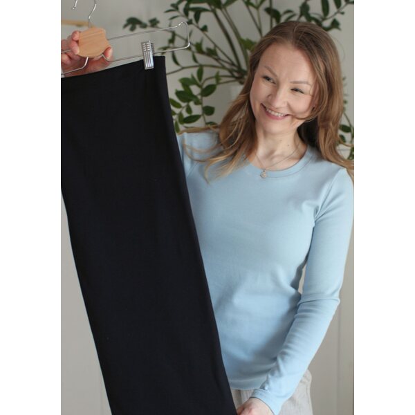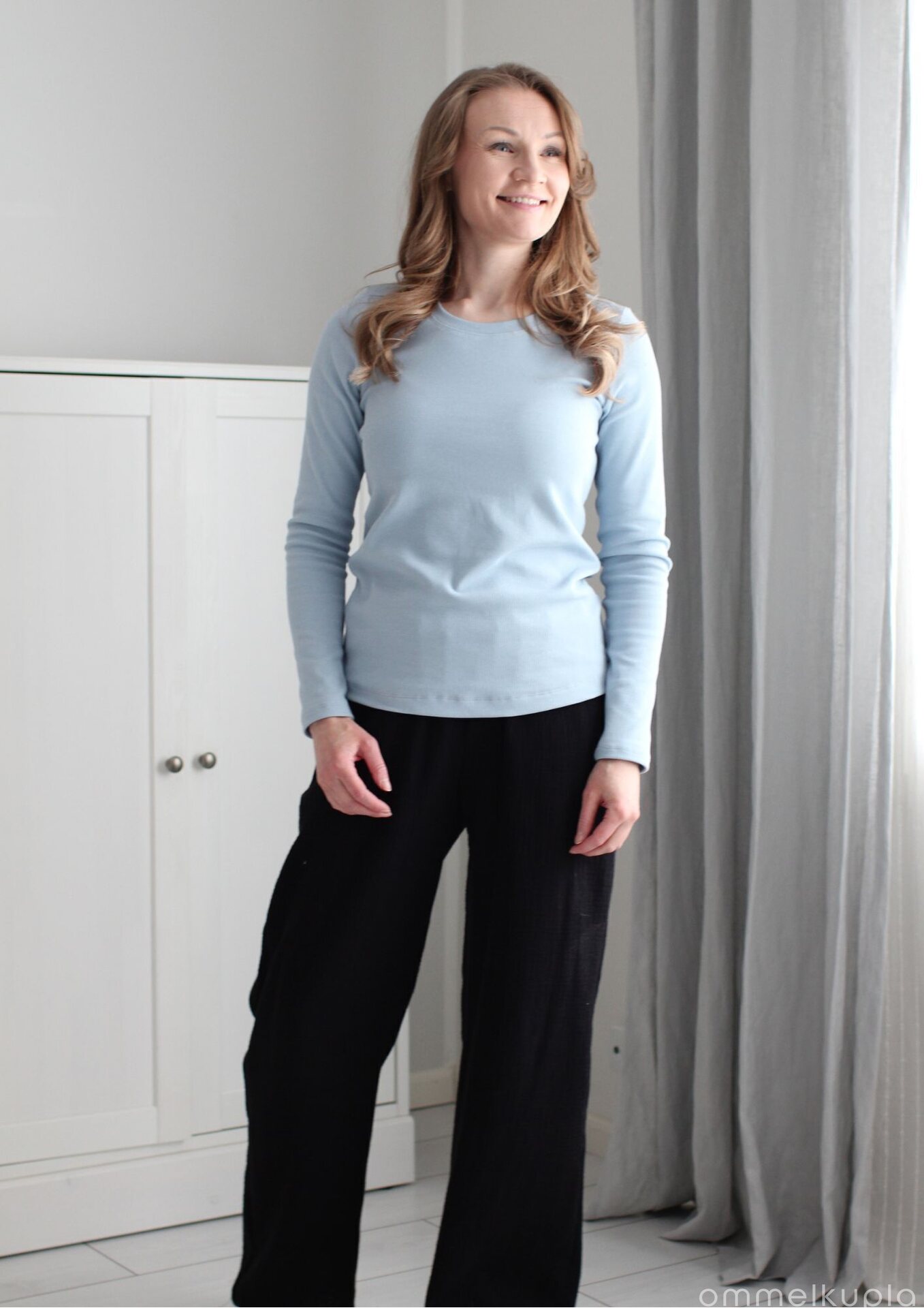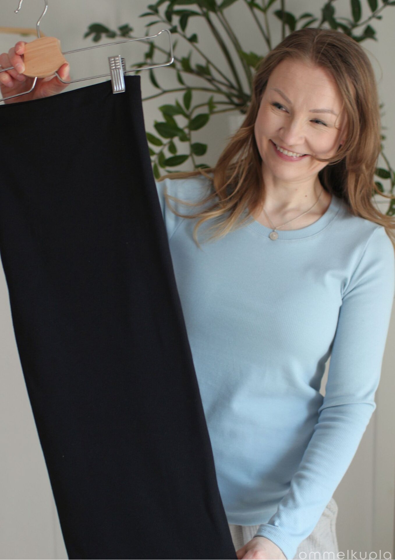 Kevyt ribbitrikoo vaateompeluun. Ribbitrikoo sopii erityisen hyvin suoran mallisiin mekkoihin, paitoihin sekä legginseihin, jotka on mitoitettu tavallista kapeammaksi tai juurikin ribbitrikoolle. Tälläisiä ompelukaavoja löydät myös meidän valikoimista. Materiaalina CAMILLA-ribbitrikoo on kevyt, pehmeä, ryhdikäs ja ihana päällä! Ribbitrikoon pinnan tekstuuri on raitamaista molemmilta puolilta, CAMILLA-ribbitrikoon raidat ovat ns. kapeat kuten DELUX ribbiresorissa.
