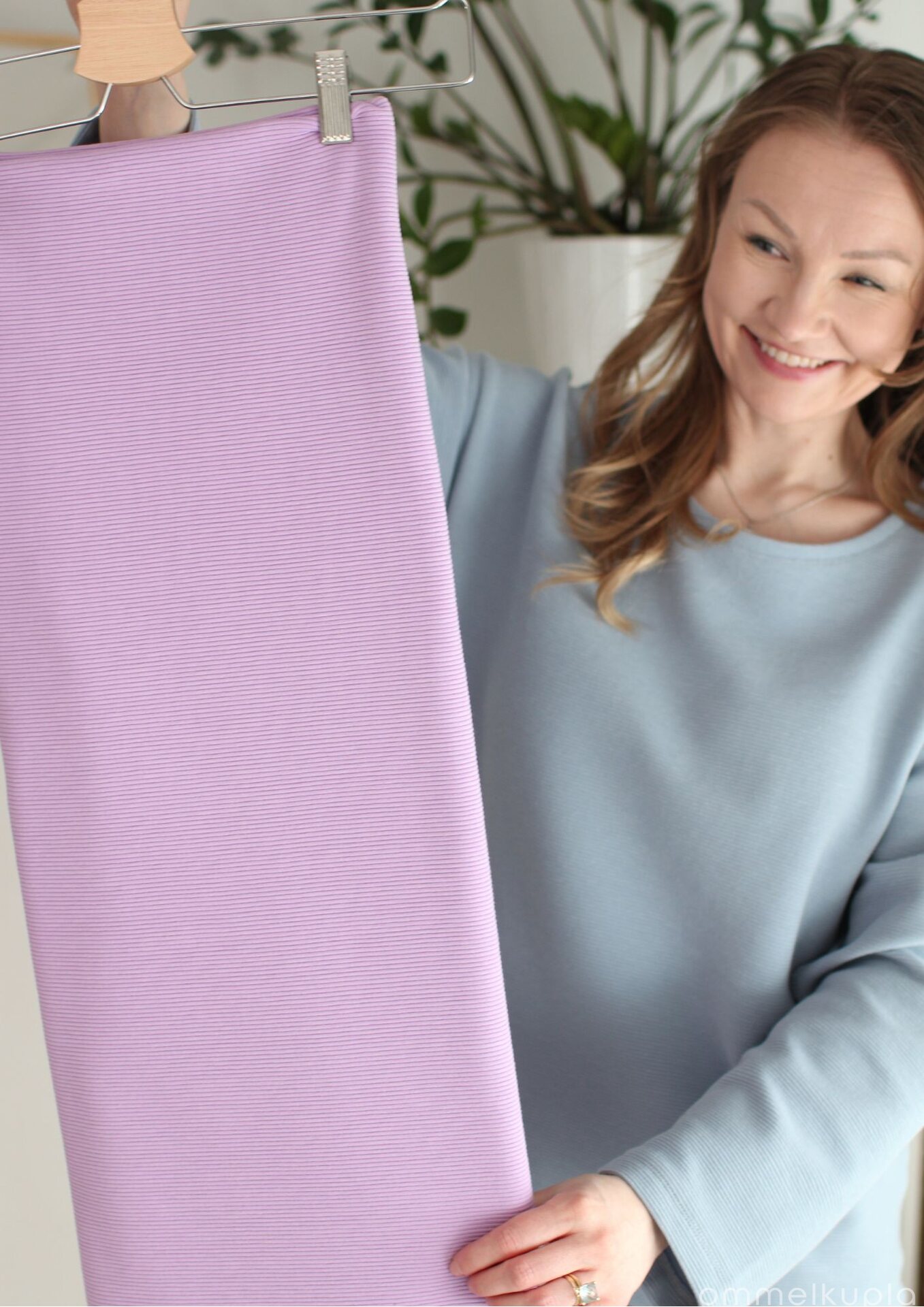 Pehmeä ja notkea ottoman -neulos on täydellinen valinta siisteihin arkivaatteisiin kuin soffalla löhöilyynkin. Se sopii hyvin huppareihin sekä väljiin paitoihin ja siksi onkin niin monipuolinen. Ottoman ei juurikaan jousta, joten rennot ompelukaavan toimivat parhaiten. Vahvuudeltaan ottoman on kuin perus joustocollege, mutta ei niin joustava. Kankaassa on elävyyttä tuova vaakaraidoitus, joka on saatu aikaan neulontatekniikalla. Jos haluat siis jotain muuta kuin peruscollaria, niin valitse silloin tämä ihanuus  ja kaavaksi jokin väljä paita.