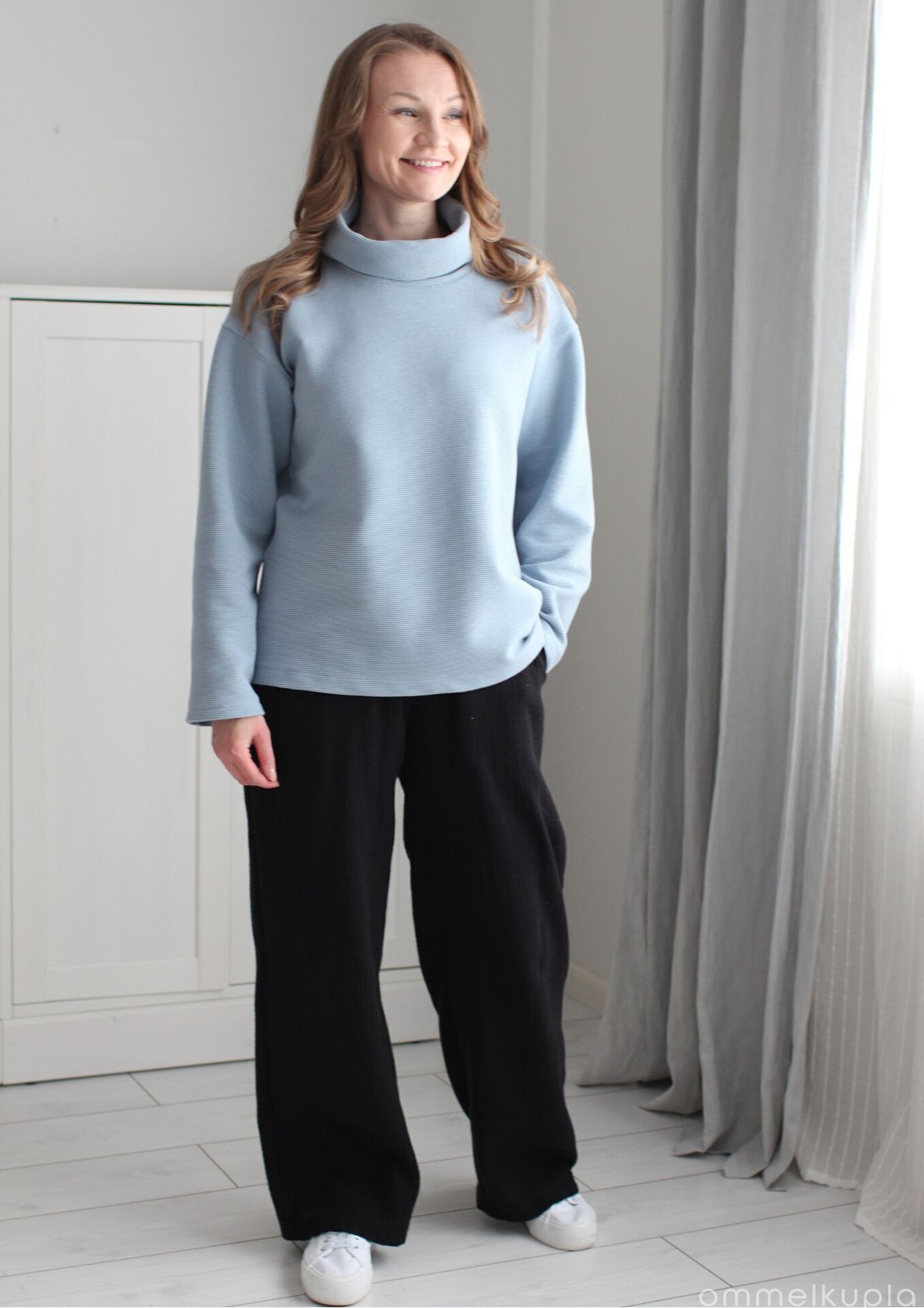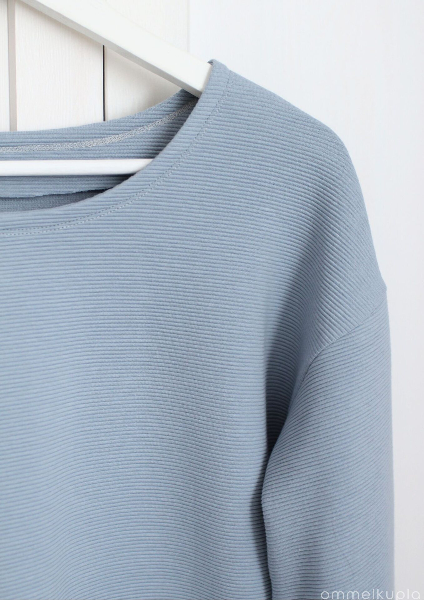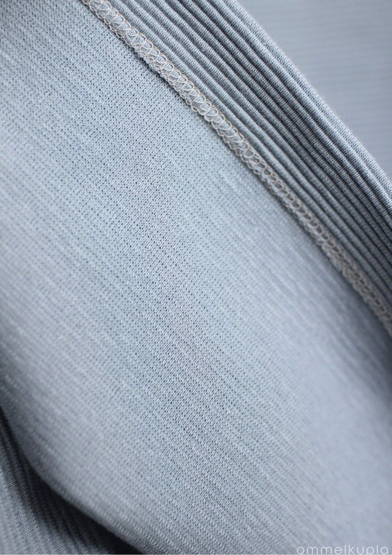 Pehmeä ja notkea ottoman -neulos on täydellinen valinta siisteihin arkivaatteisiin kuin soffalla löhöilyynkin. Se sopii hyvin huppareihin sekä väljiin paitoihin ja siksi onkin niin monipuolinen. Ottoman ei juurikaan jousta, joten rennot ompelukaavan toimivat parhaiten. Vahvuudeltaan ottoman on kuin perus joustocollege, mutta ei niin joustava. Kankaassa on elävyyttä tuova vaakaraidoitus, joka on saatu aikaan neulontatekniikalla. Jos haluat siis jotain muuta kuin peruscollaria, niin valitse silloin tämä ihanuus  ja kaavaksi jokin väljä paita.