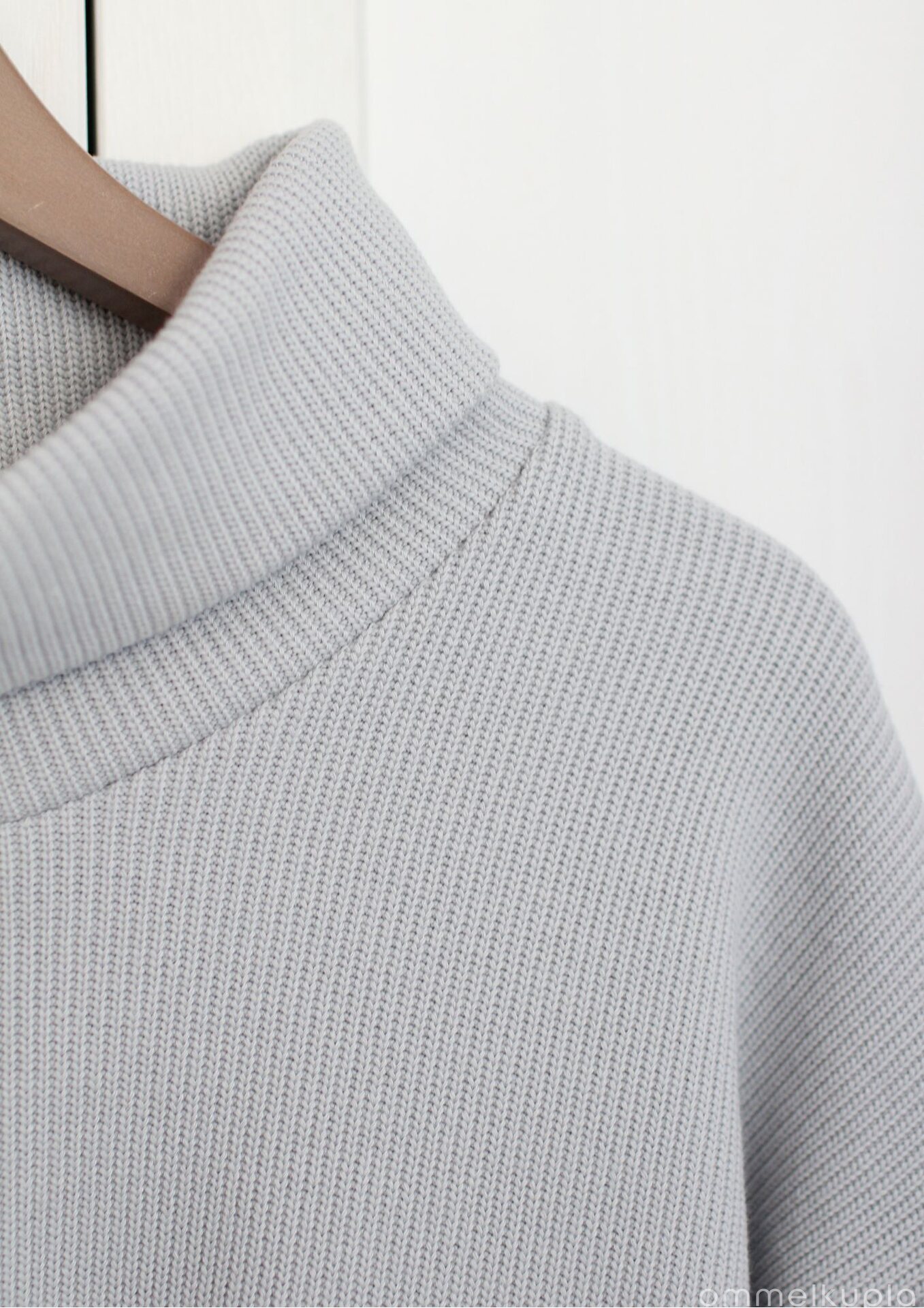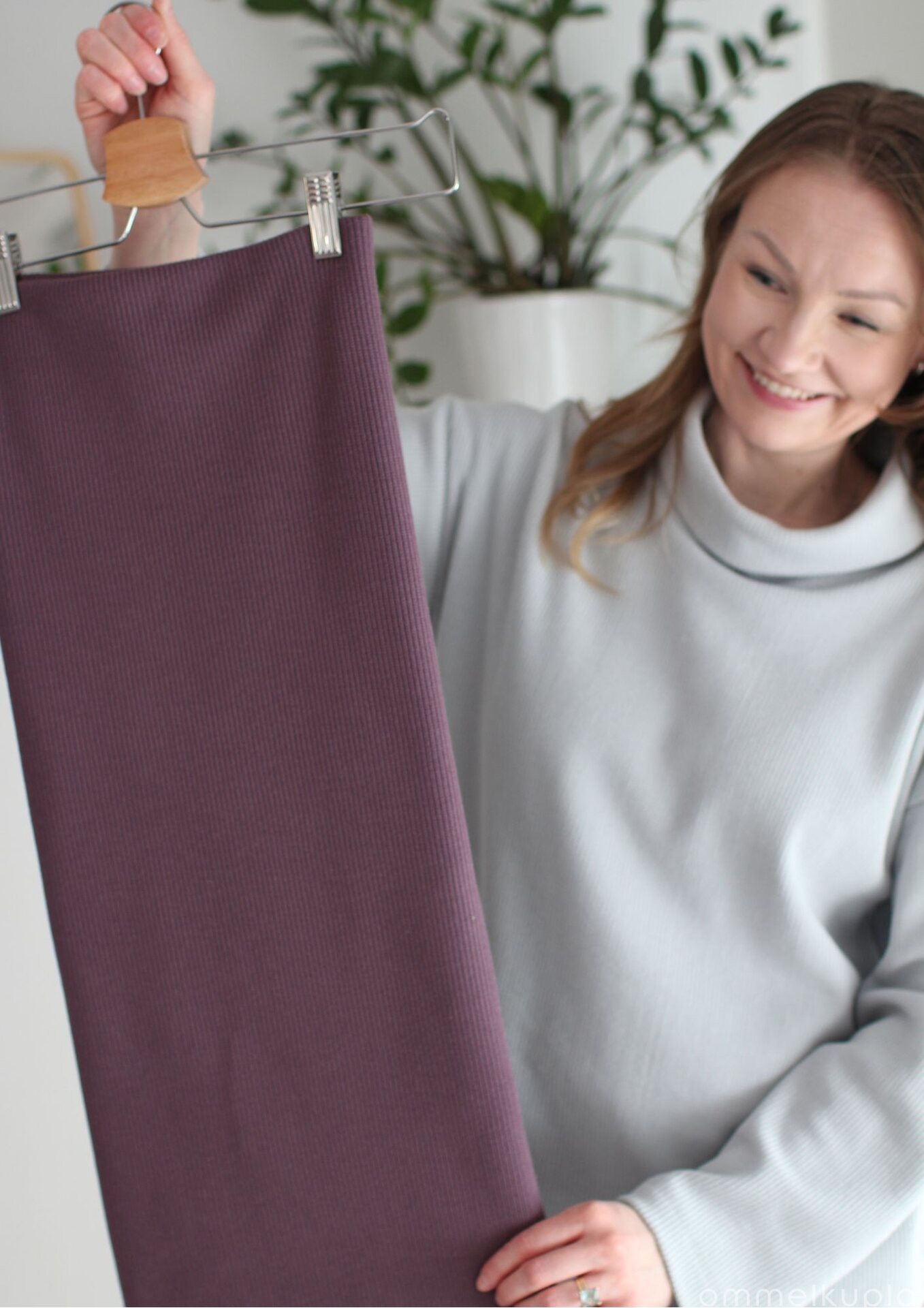 Viileä neulos vaatetusompeluun. Emilia on ihana rentoihin paitoihin, sillä se laskeutuu juuri sopivasti, mutta on kuitenkin napakka. Puuvillaneulos sisältää hieman elastaania, joten se myös joustaa hieman. Emilian pinta on raitamainen, sillä neuloksessa erottuu selvästi kapeat "oikeat ja nurjat".