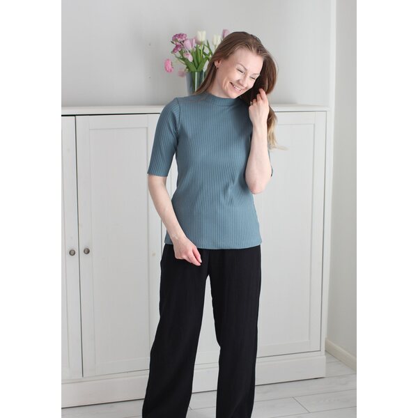 Pehmeä ribbitrikoo vaateompeluun. Ribbitrikoo sopii erityisen hyvin suoran mallisiin mekkoihin, paitoihin sekä legginseihin, jotka on mitoitettu tavallista kapeammaksi tai juurikin ribbitrikoolle. Tälläisiä ompelukaavoja löydät myös meidän valikoimista. Materiaalina RITA-ribbitrikoo on sileä, pehmeä ja ihana pitää yllä.