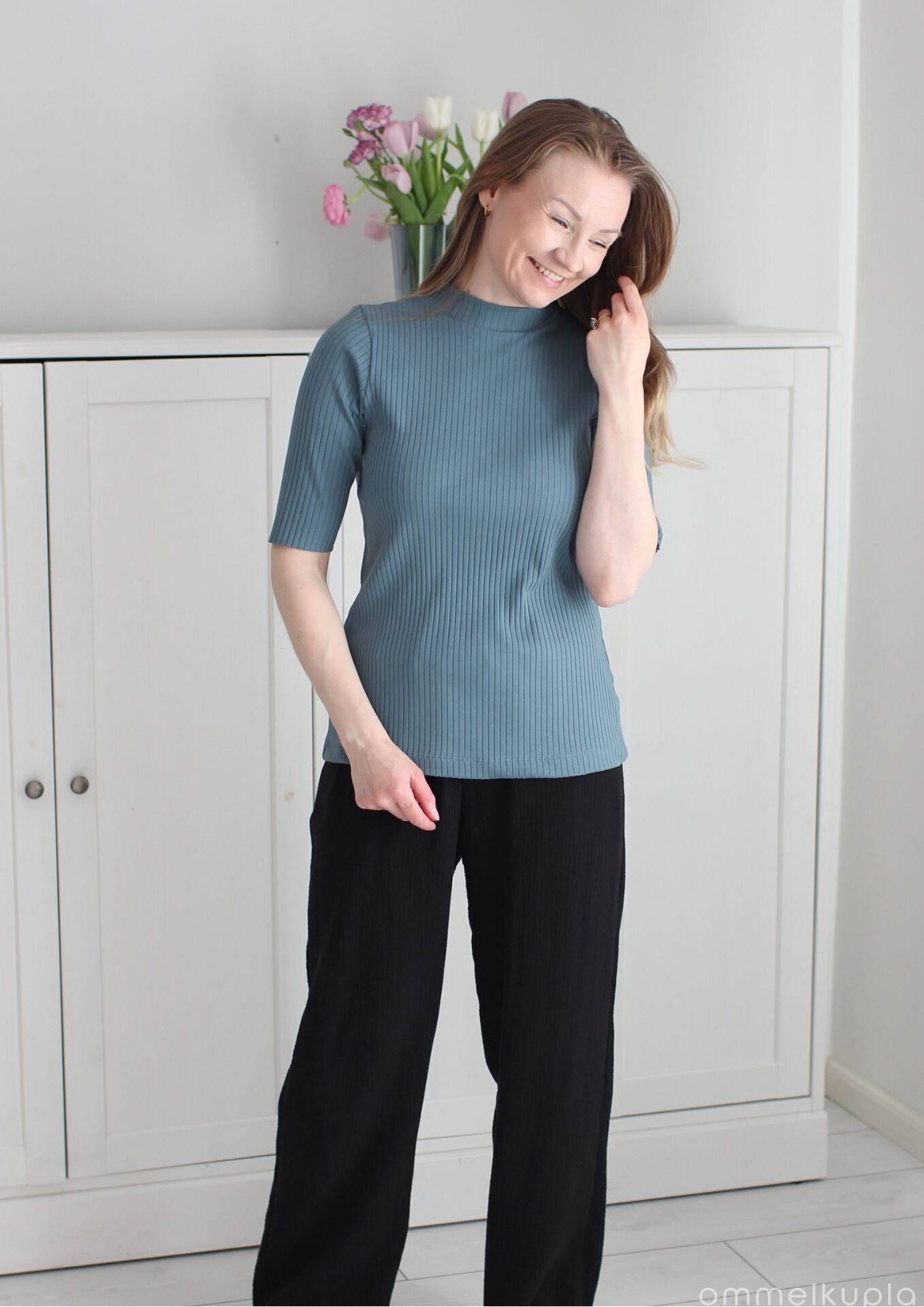 Pehmeä ribbitrikoo vaateompeluun. Ribbitrikoo sopii erityisen hyvin suoran mallisiin mekkoihin, paitoihin sekä legginseihin, jotka on mitoitettu tavallista kapeammaksi tai juurikin ribbitrikoolle. Tälläisiä ompelukaavoja löydät myös meidän valikoimista. Materiaalina RITA-ribbitrikoo on sileä, pehmeä ja ihana pitää yllä.